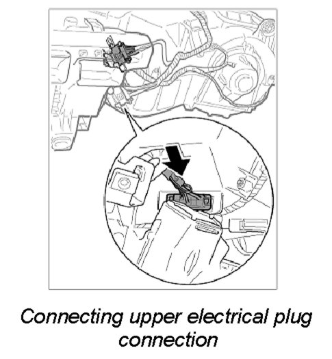 5. Connect upper electric plug connection at heater/air-conditioning unit until it is felt to engage.