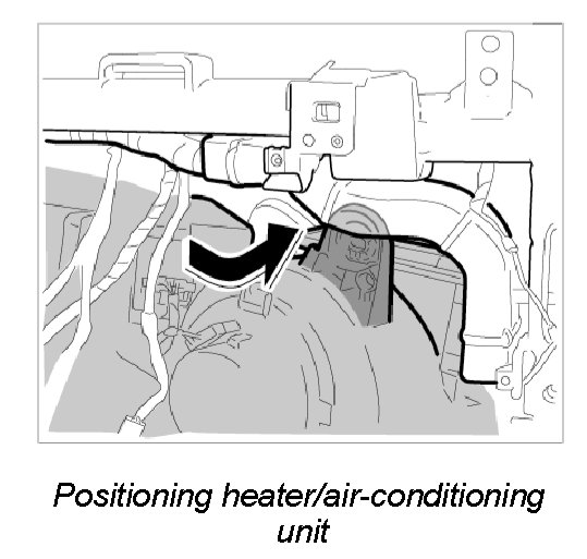 11. Push dashboard bracket forwards while lifting the heater/air-conditioning unit and taking care that no electric lines get trapped.