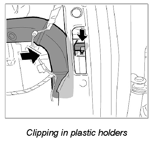 13. Clip in the plastic holders for the electric main wire harness to the dashboard bracket.