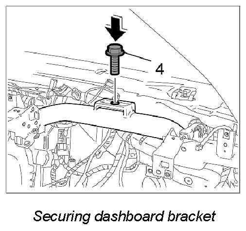 14. Secure dashboard bracket with the fastening screw -4-. - Tightening torque: 9.7 Nm (7.0 ftlb.)