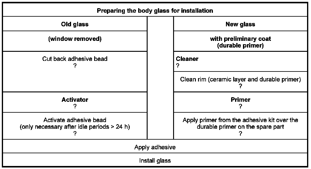 INFORMATION: In addition to this manual, observe the relevant job descriptions for installing car windows.