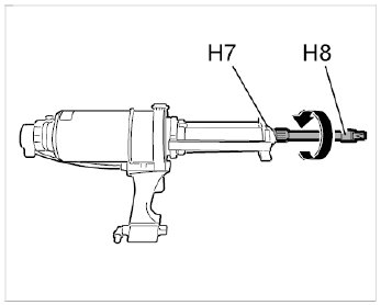 5.1. Screw processing nozzle -H8- onto the mixing nozzle -H7-.