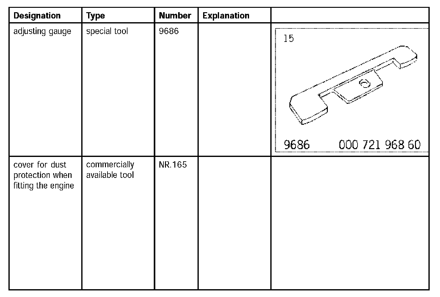 20. Remove special tool adjustment gauge 9686. Undo the M8 screw and remove gauge.