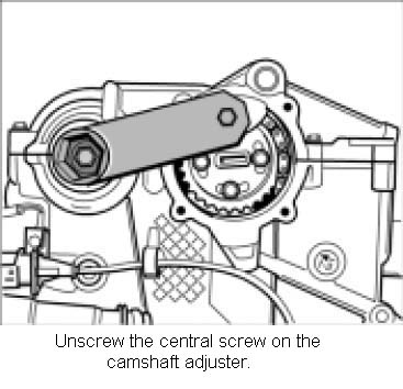 Note: Before disassembling the cylinder head cover, it is essential to unscrew the central screw on the camshaft adjustment device.