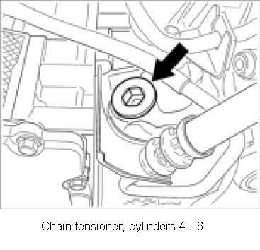 7. Remove chain tensioner for cylinders 1 -3 or -6.