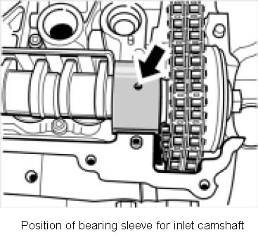 Note: Make sure that the bearing sleeve on the inlet camshaft is positioned correctly.