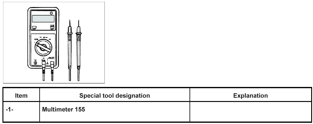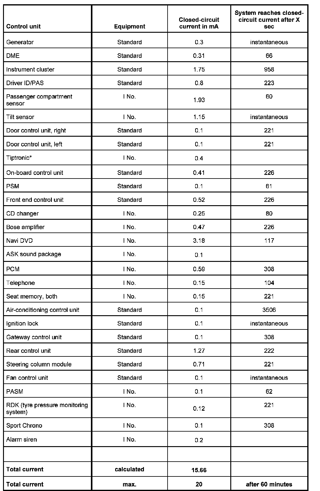 INFORMATION: Before measuring the closed-circuit current, determine the vehicle equipment (I numbers) and establish the expected closed-circuit current with the aid of the attached table.