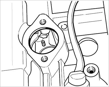 2. Replace the O-ring of the hydraulic valve and coat the new O-ring with engine oil. Insert hydraulic valve into the cylinder head. Pay attention to installation position while doing this. The groove on the valve -arrow- points to the dowel pin in the cylinder head.