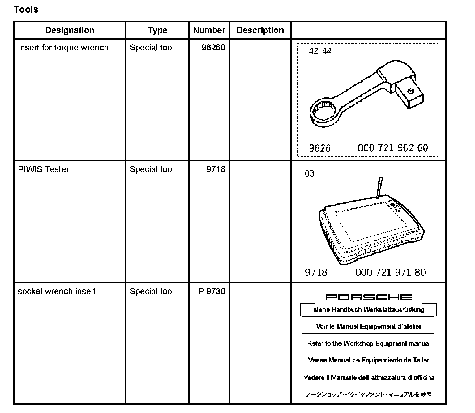 -> After working on wheel suspension parts, when replacing the steering-angle sensor, and after changing the wheel alignment values, calibrate the steering-angle sensor using the PIWIS Tester 9718.