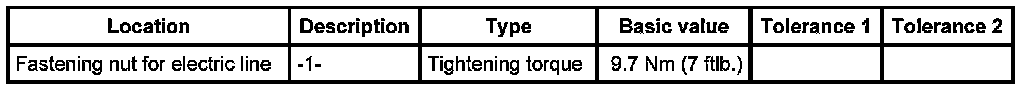 1. Engage the fuse box on the support and secure with the fastening nut -1-. Ensure that the electric lines are not trapped or installed live. - Tightening torque: 9.7 Nm (7 ftlb.)