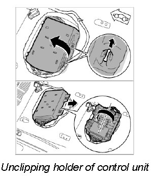 3. Press the four retaining clips carefully back and take the control unit out of the holder.