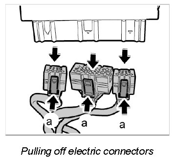 2. Release the three electrical plugs -a- and pull them away from the control unit.