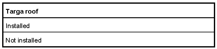 12. Select Targa roof and code with F8.