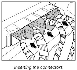 3. Press in plugs -A- on the control module, until the connectors engage.