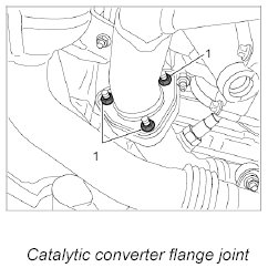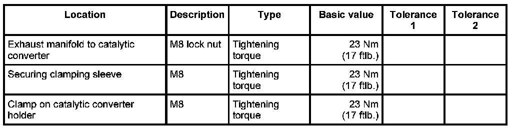 5. Tighten three lock nuts -1- on catalytic converter flange. - Tightening torque: 23 Nm (17 ftlb.)
