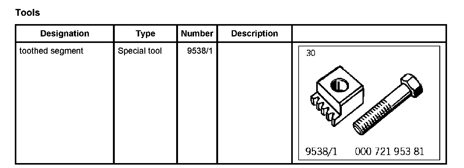 1. To counter, fit toothed segment 9538/1 to the crankcase using an M12 x 50 hexagon-head bolt (fine thread).