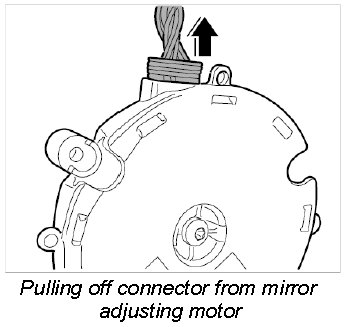3. Pull off connector on mirror adjuster motor take off mirror adjusting motor.