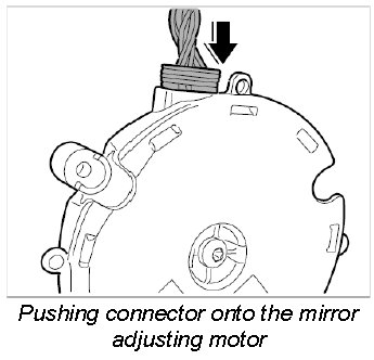 1. Push connector onto mirror adjusting motor until it is felt to engage.
