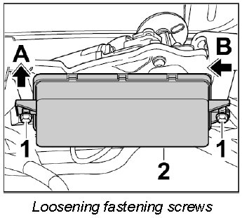 1. Unscrew the two fastening screws -1- and move control unit -2- first in direction -A- and then in direction -B- and set it down.