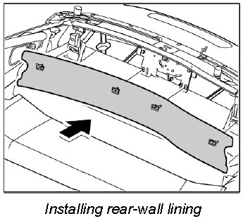 Position rear-wall lining and push it on in direction of arrow until the pegs of the cover clip in.