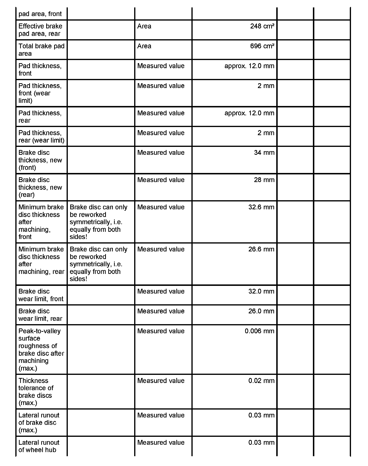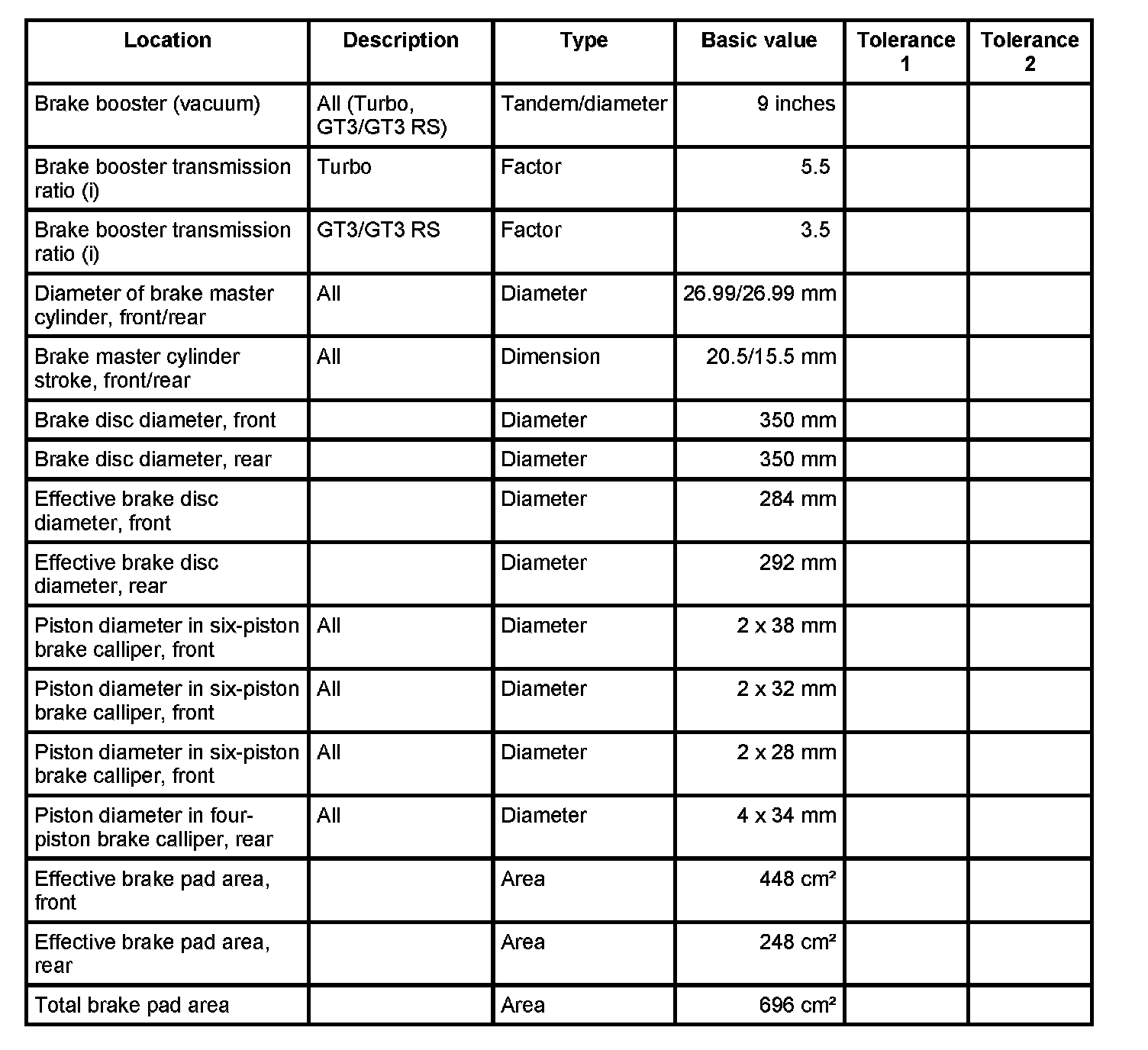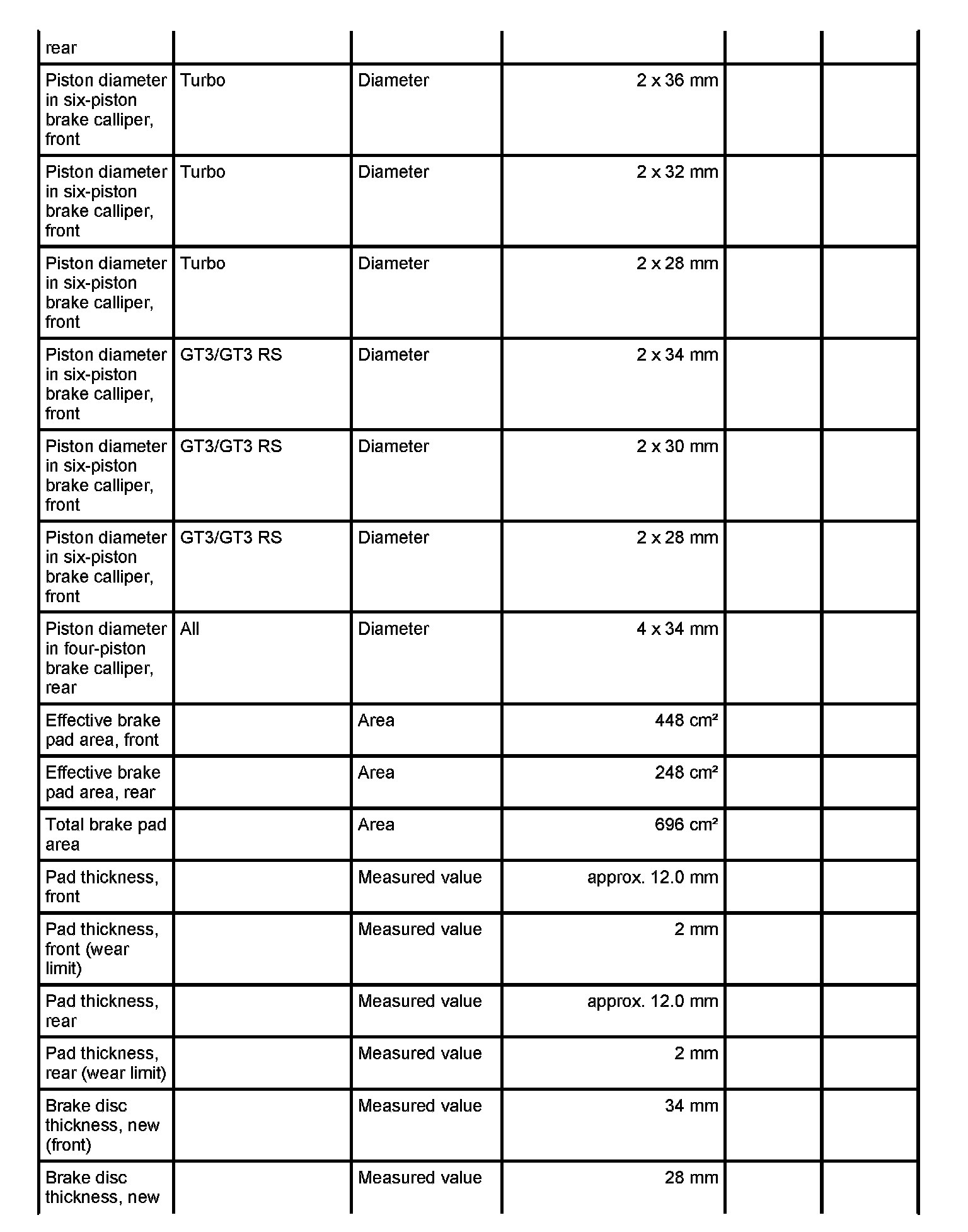 Test values/wear limits - 911 Turbo/GT3/GT3 IRS