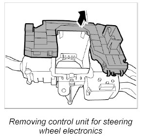 4. Remove control unit for steering wheel electronics.
