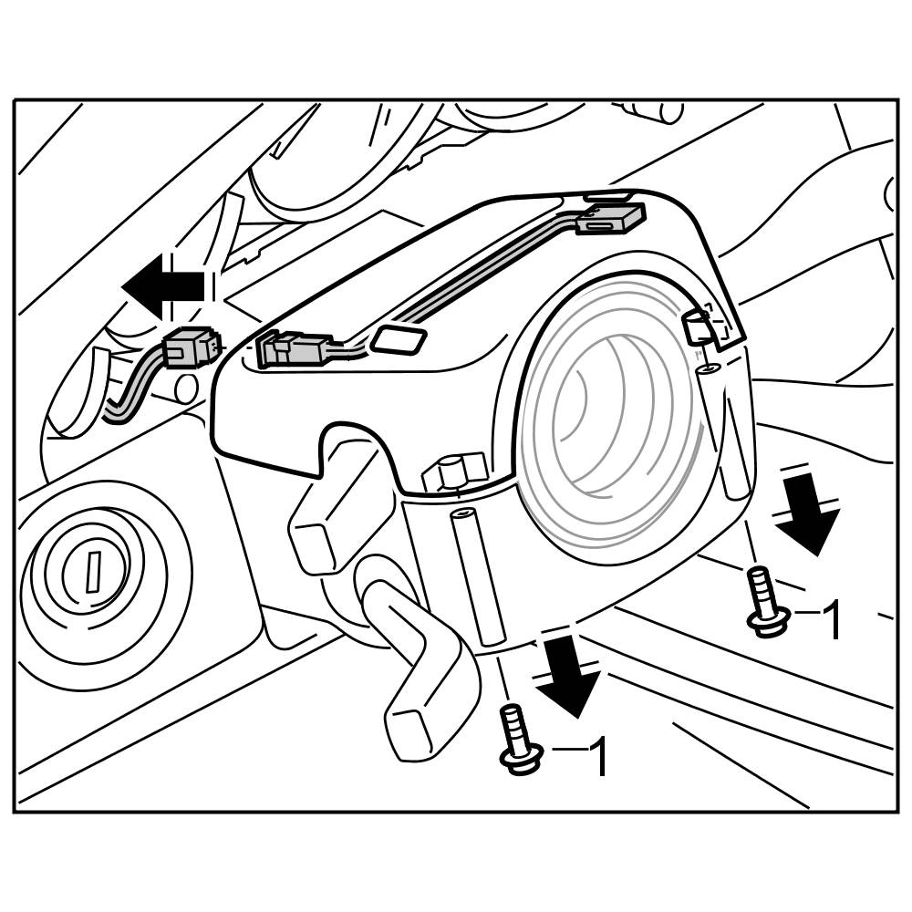 1. Unscrew the two fastening screws -1- for the steering column trim.