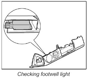 3. Check sheet metal panel on footwell light to ensure that it is seated securely and press in sheet metal panel if necessary.