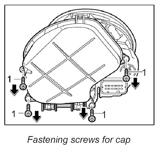 2. Release cap once at the top and twice at the bottom -a- and remove from the main headlight.