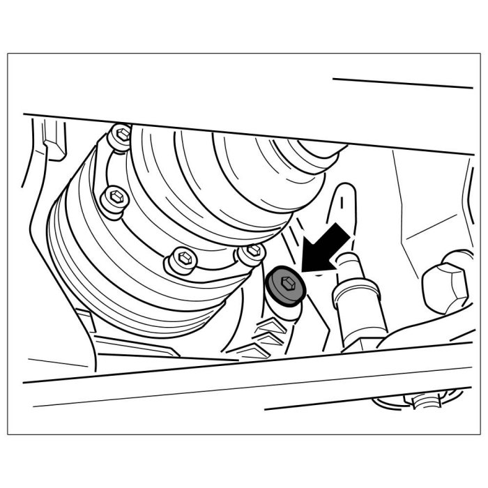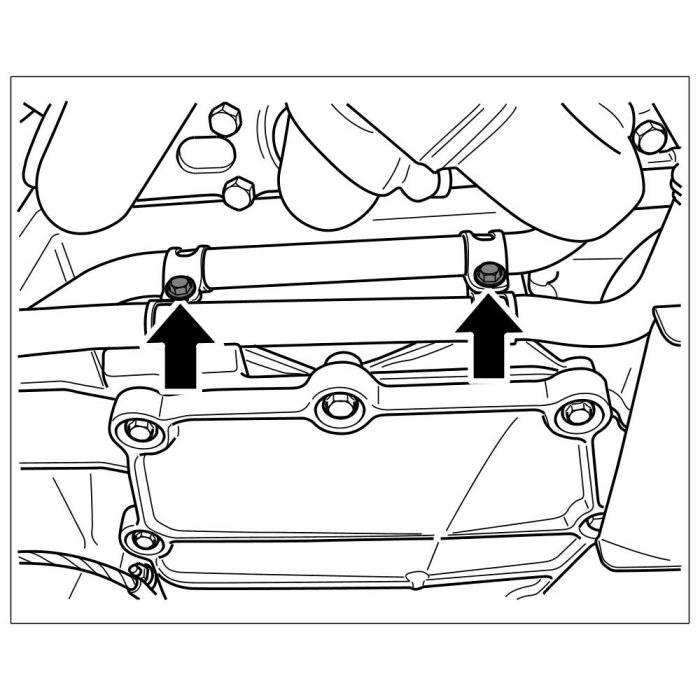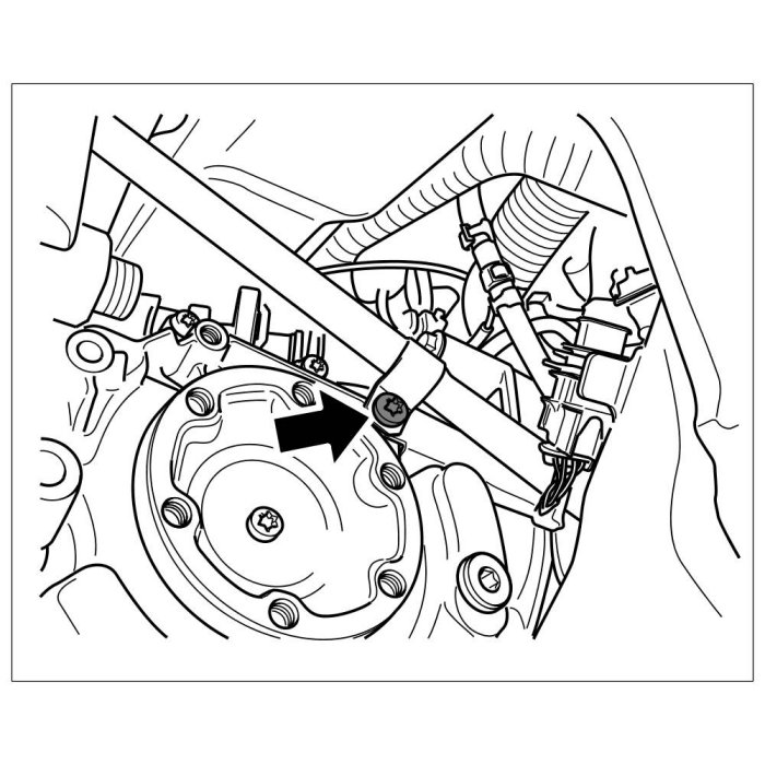 1. Screw in retaining screw between the transmission and the coolant pipe.
