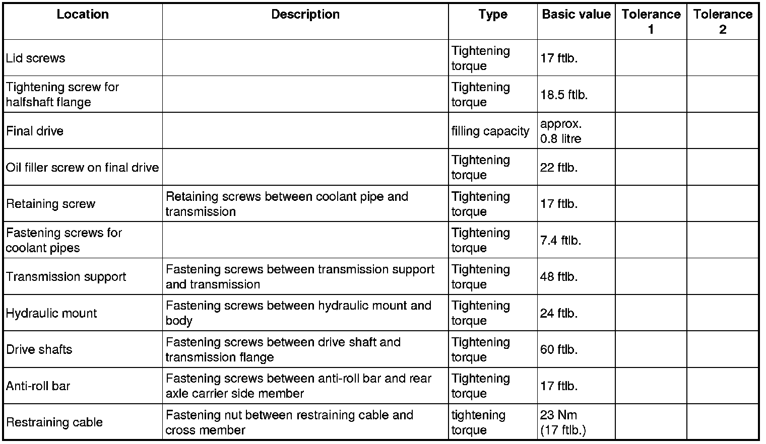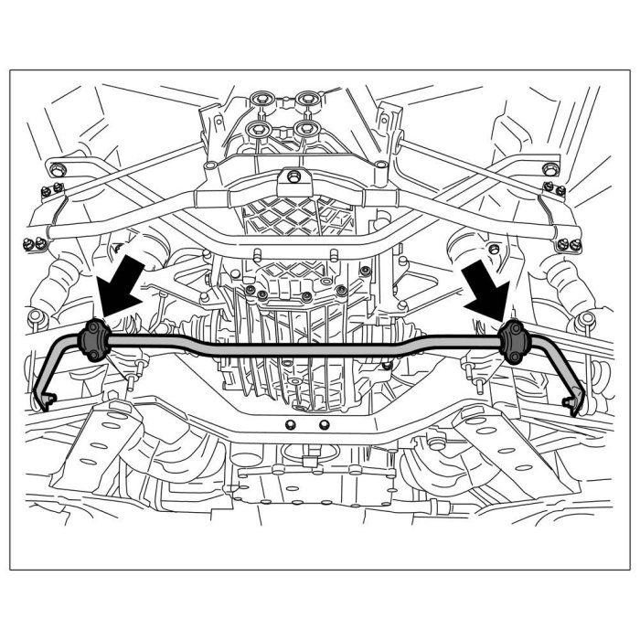 1. Loosen fastening screws between anti-roll bar and rear axle carrier side panel and fold anti-roll bar forward.