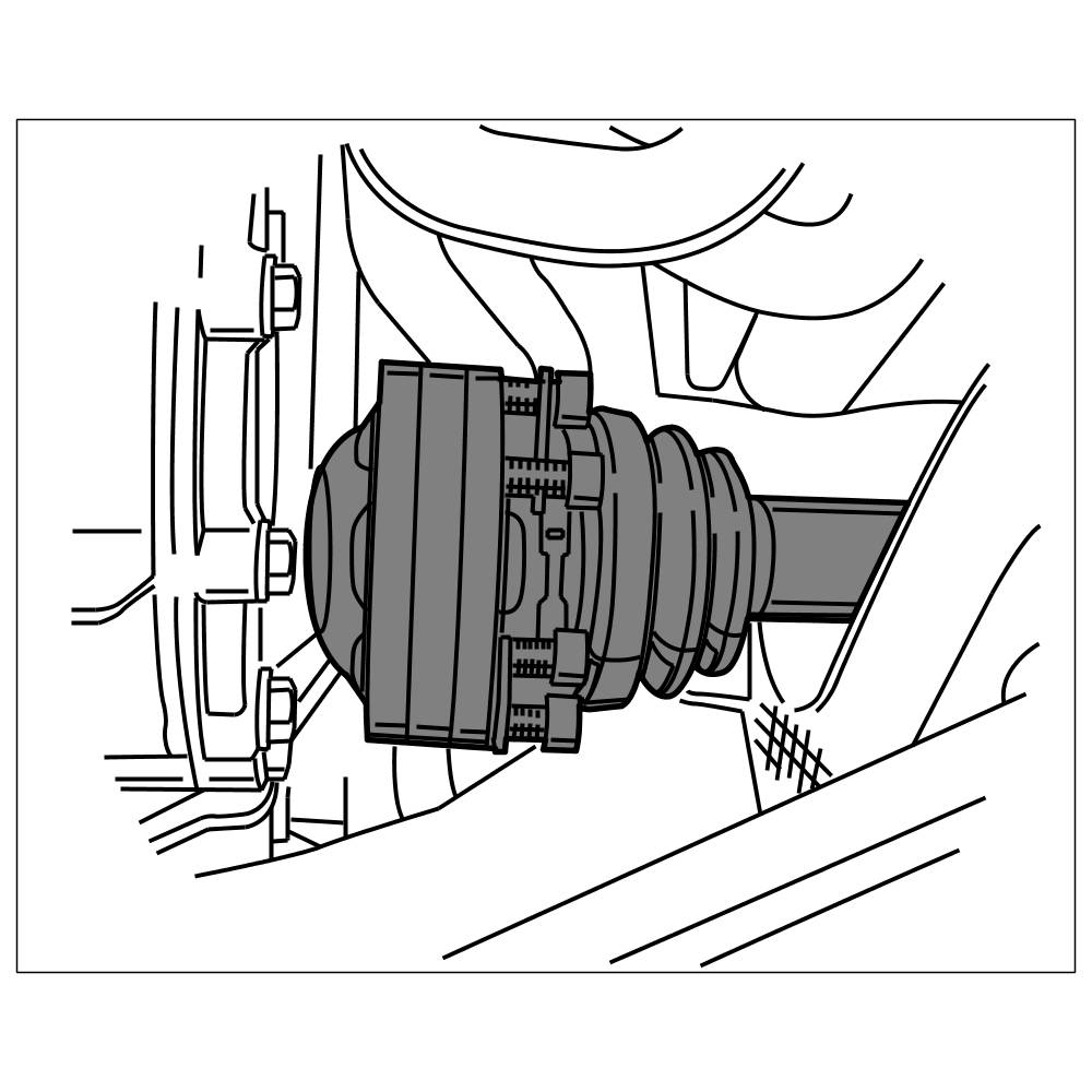 2. Remove right drive shaft on transmission side. For this purpose, unscrew six hexagon socket screws between the drive shaft and the transmission flange, respectively. Counter on the brake disc or activate the parking brake to avoid simultaneous turning.