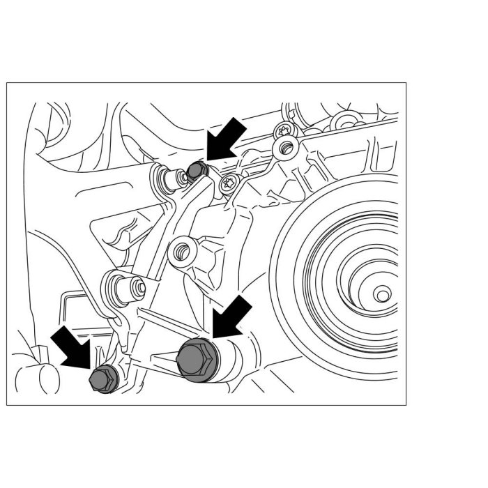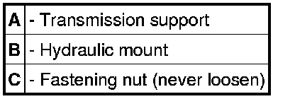 4. Unscrew fastening screws between the body and the hydraulic mount -arrow-.