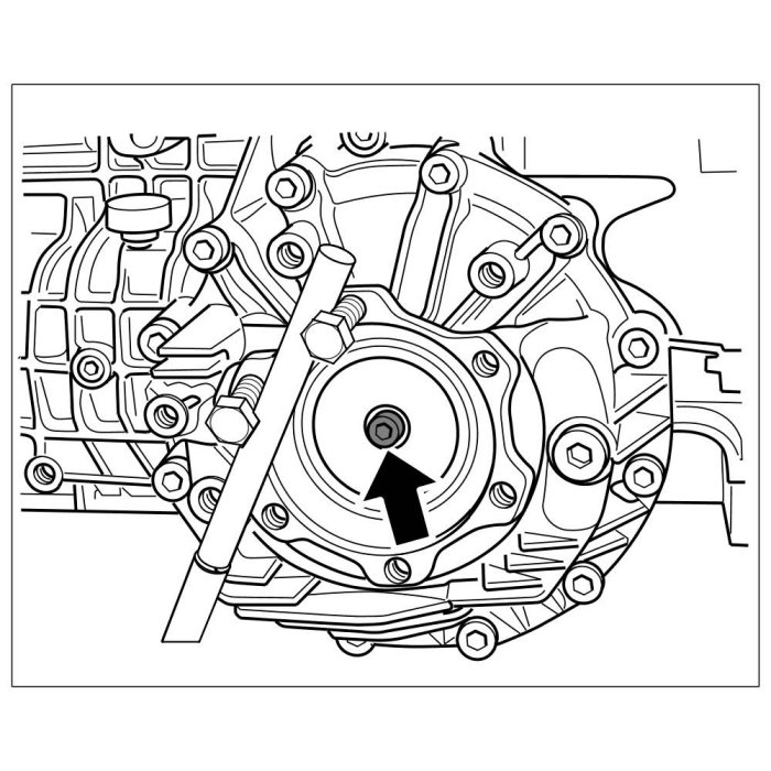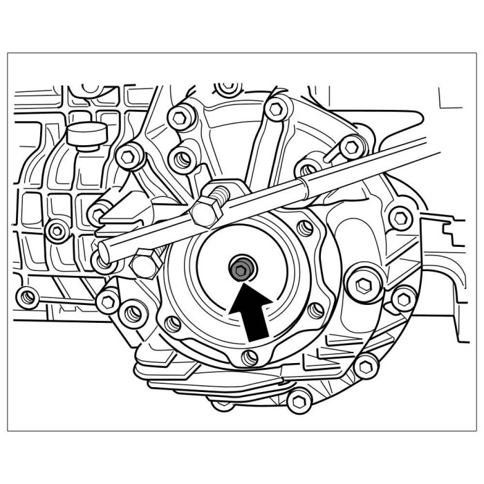 8. Fill in transmission oil up to the bottom edge of the filler opening.