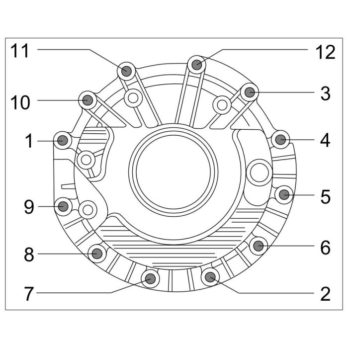 4. Screw in lid screws in the following order -1 to 12- and tighten.