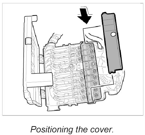 4. Insert the blue cover in power distributor and clip in place.