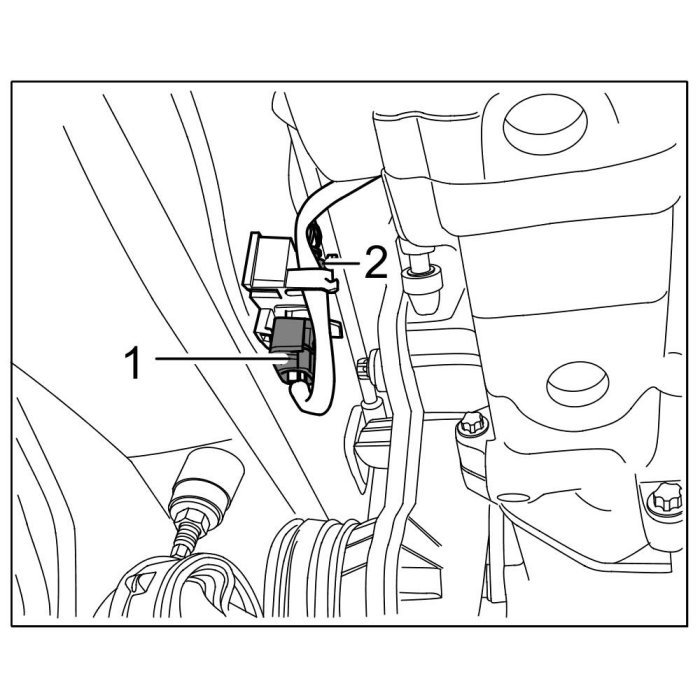 1. Unclip cable plug -1- and connecting cable -2- from the support. Release and disconnect cable plug -1-.
