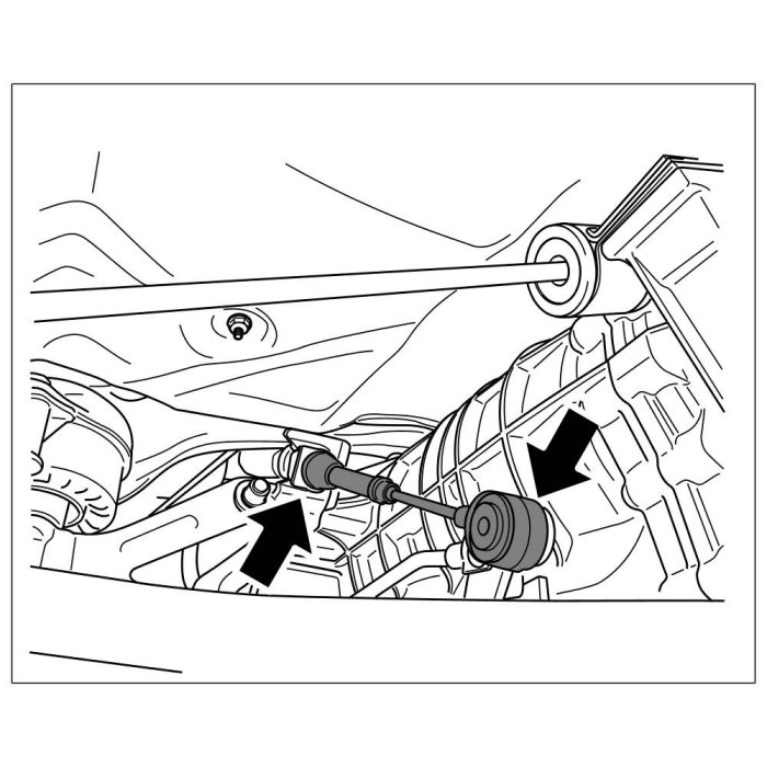 5. Screw in fastening screws between the body and the hydraulic mount -arrows-.