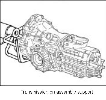 2. Tighten the transmission using engine support 9589 or engine and gear support VW 540 at the assembly support.