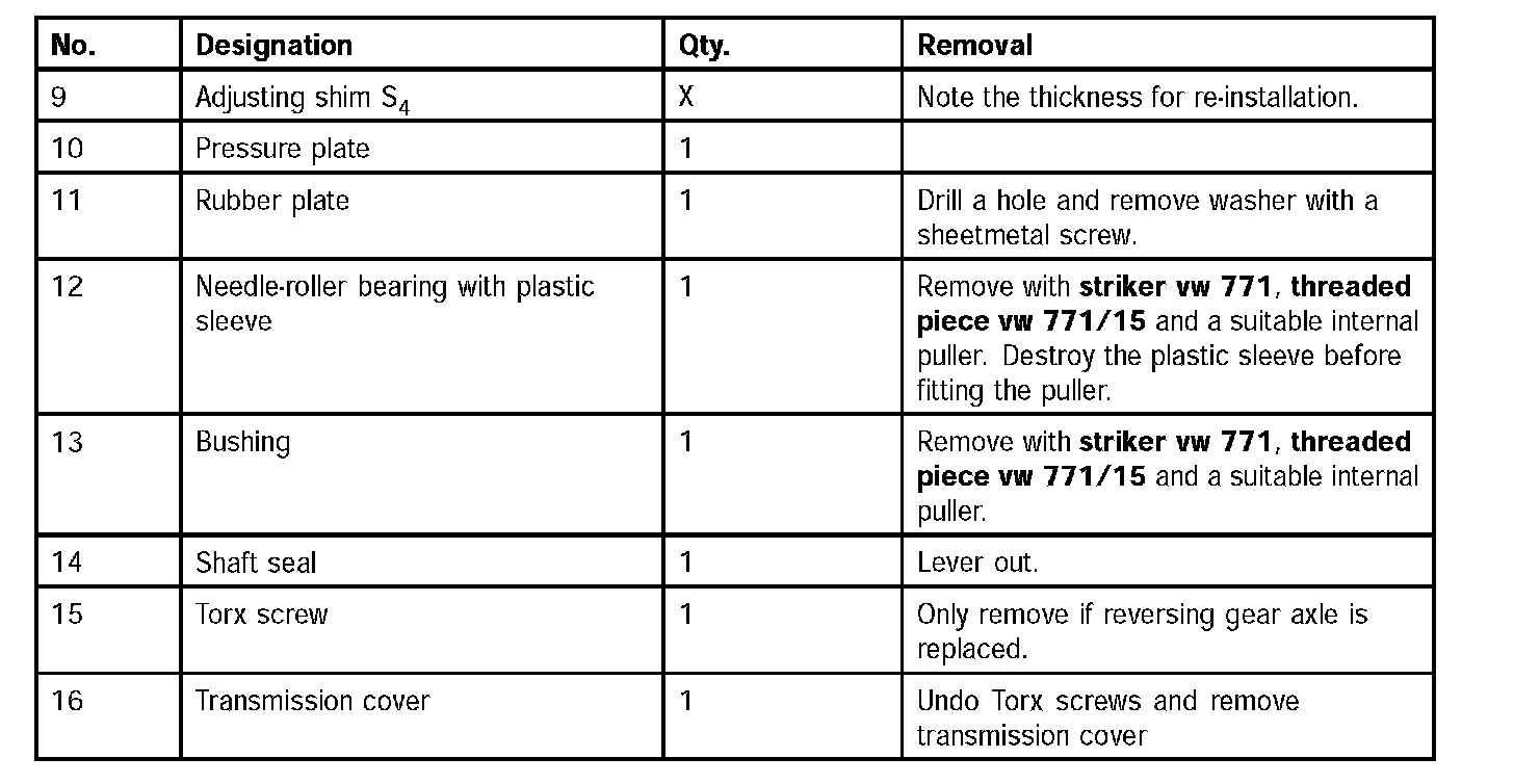 5. Remove bushing -13- with a suitable internal puller and striker vw 771.