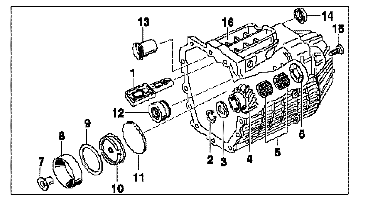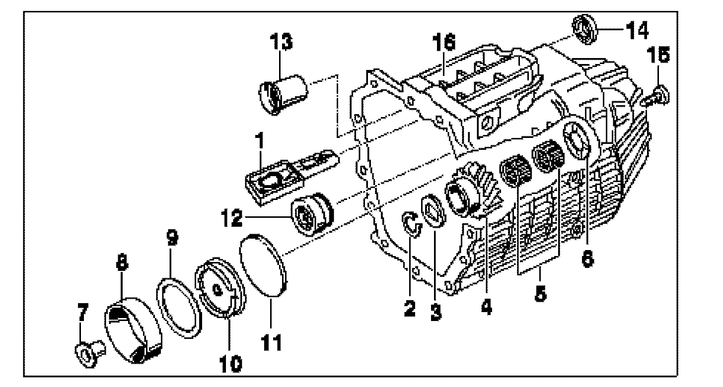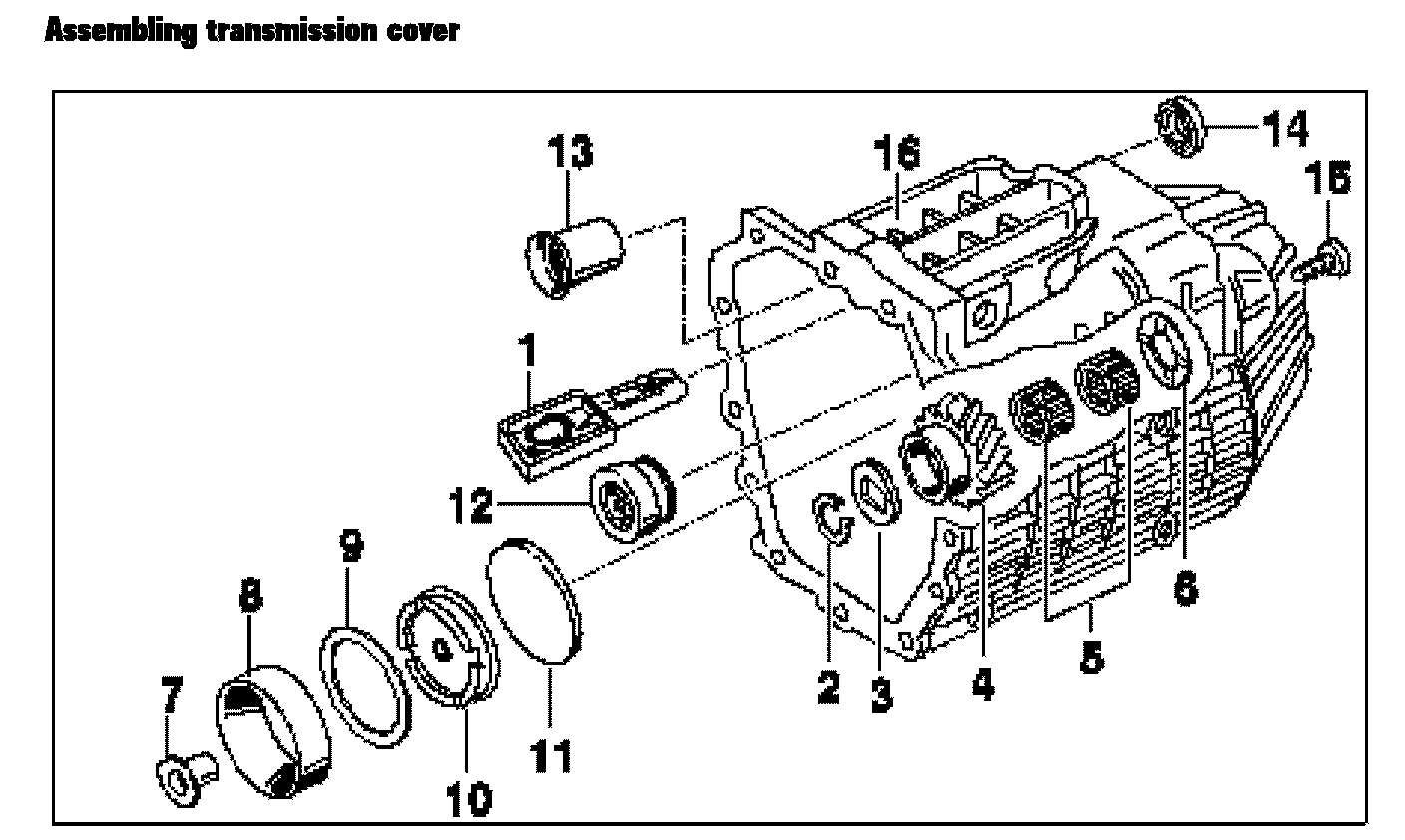 5. Fit transmission cover -16-. To do this, coat cover sealing surfaces lightly with Loctite 574 and screw in Torx screws.