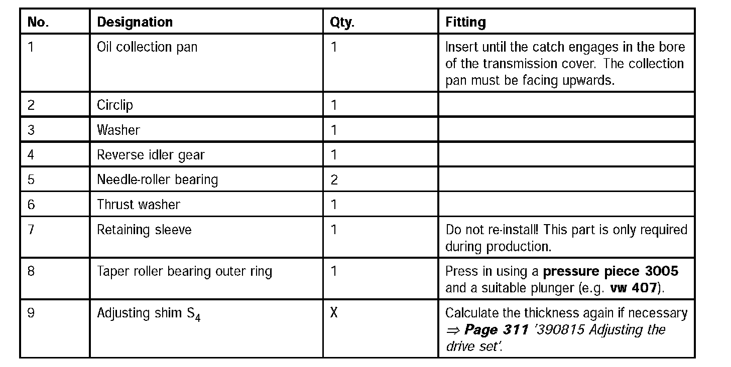 1. Fill the shaft seal -14- between the dust and sealing lips with multipurpose grease and drive in with a suitable tubular piece (e.g. vw 423). Observe the correct drive-in depth -a = 1 mm-.