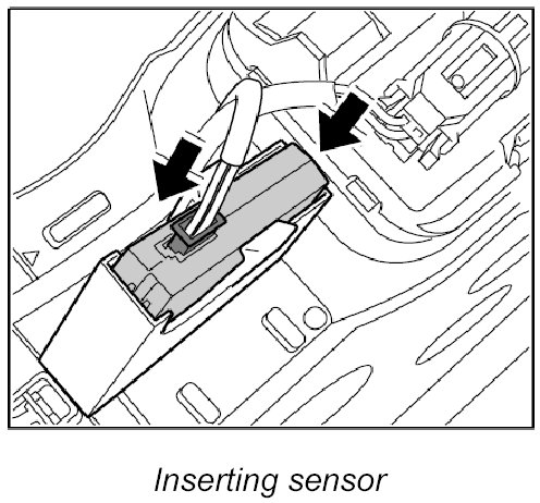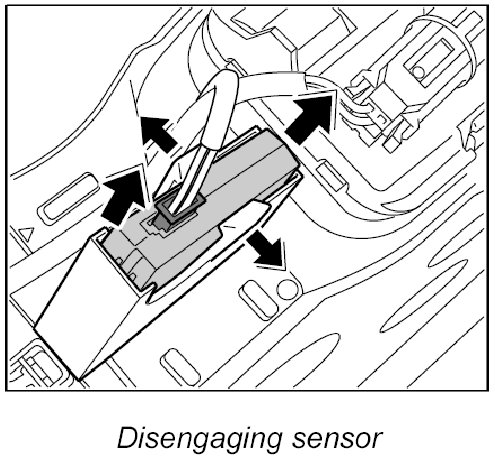 2. Lift the two retaining tabs aside and pull out the sensor.
