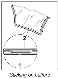 2. Stick buffers -1- into the groove on the bottom of the windstop middle section -2-.