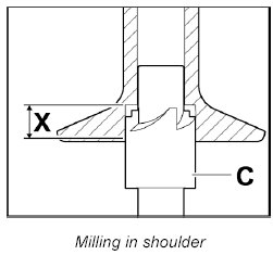 Mill out bore hole up to dimension X using spot facer C. See Table. Milling in may only be performed using the Porsche special tool contained in the Time-Sert thread repair kit. Use an electronically controlled power drill set to a speed of approx. 250 rpm (1/min) for milling in.