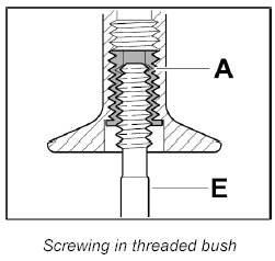 Screw threaded bush A in fully (note bush length classification) using the screw-in tool E.