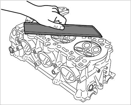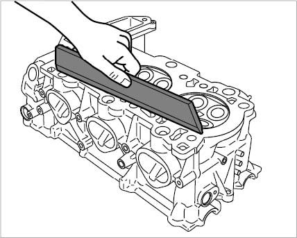 3. Check combustion chamber sealing face of the cylinder head for distortion (flatness) using a straight-edge and feeler gauge.