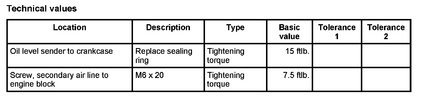1. Insert oil-level sender together with a new sealing ring and tighten. --> Tightening torque: 15 ftlb.