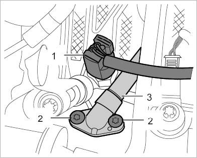 2. Unscrew two Torx screws (M6 x 20) -2- on the flange of the secondary air line -3-.