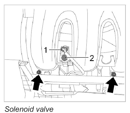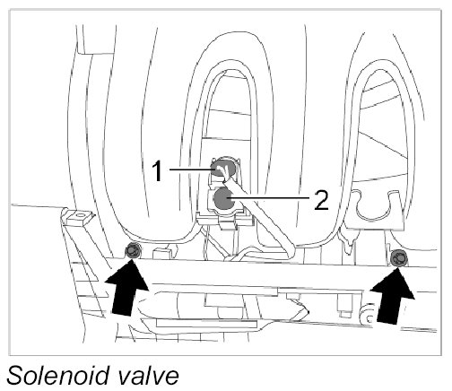 10. Clip solenoid valve -2- into intake-air distributor.